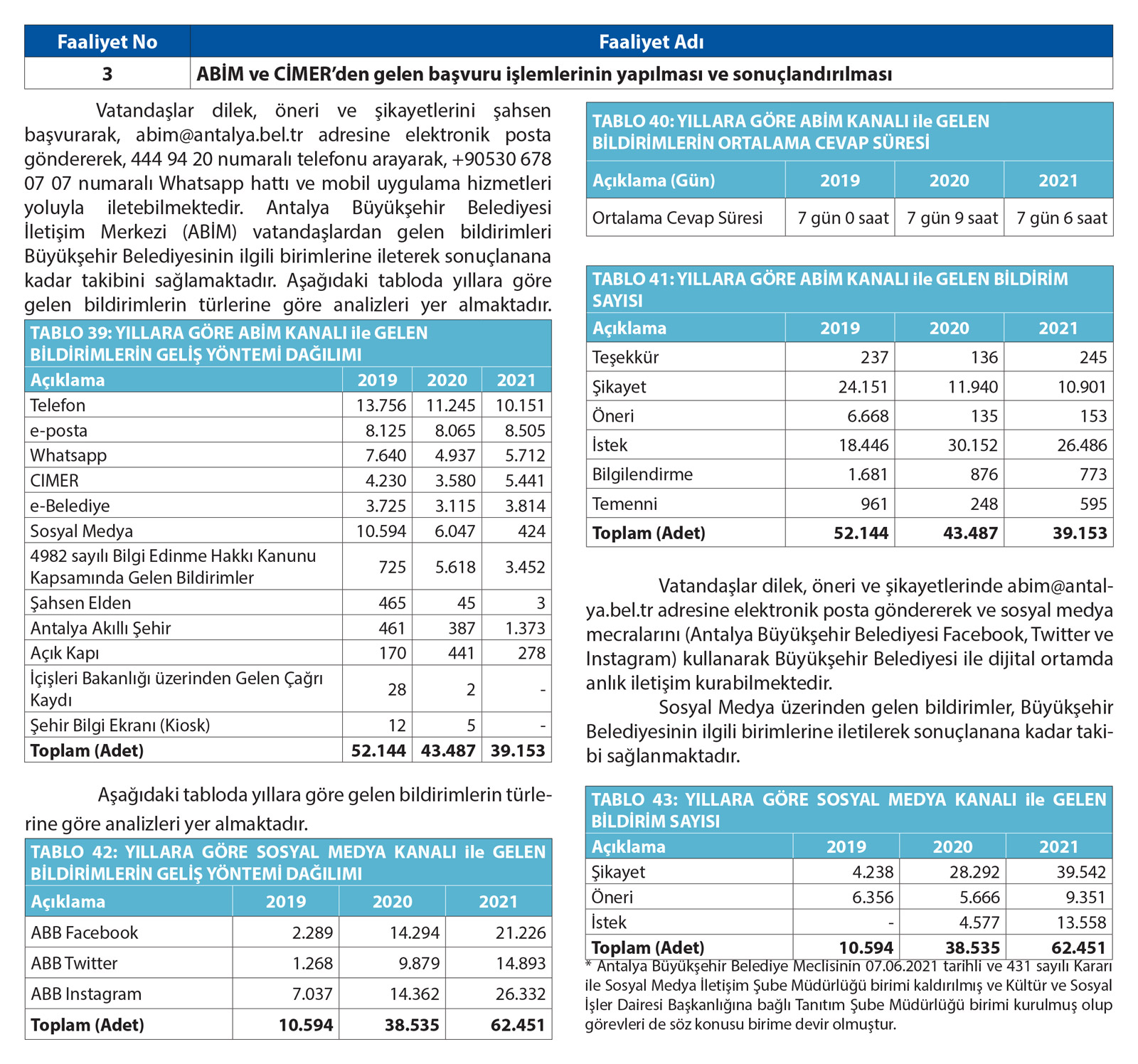 Source: Antalya Metropolitan Municipality 2021 Annual Report, pages 62–63