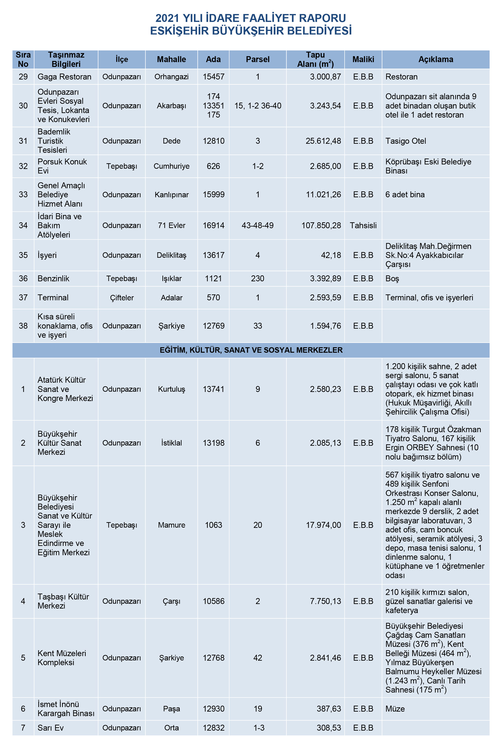 Source: Eskişehir Metropolitan Municipality 2021 Annual Report, pages 13–19