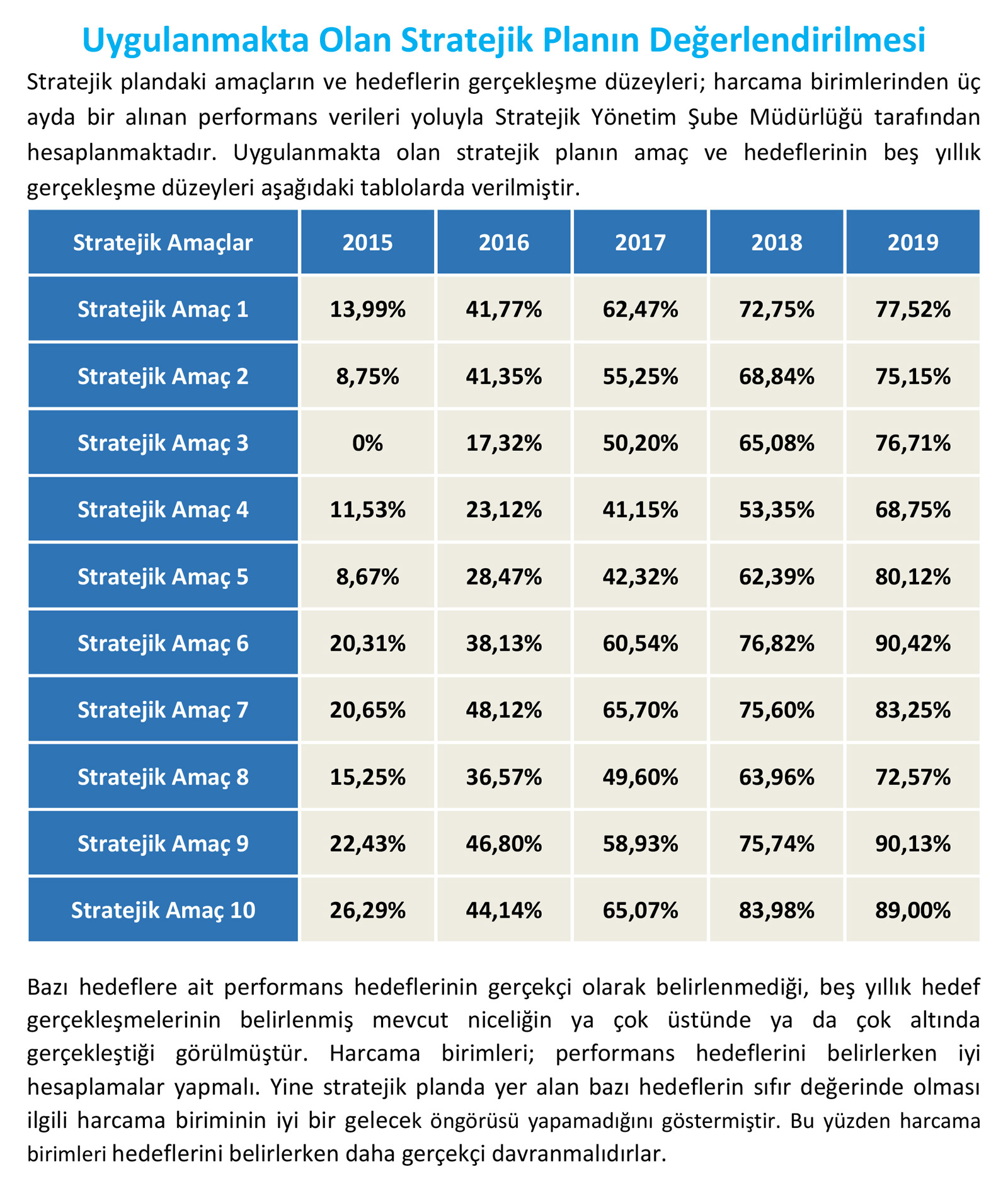 Municipalities need to conduct current state analysis in a detailed manner. One of the most important foundational stones of this process is the performance evaluation of the previous strategic plan. This process ıs very useful to understand the improvement areas when making new plans. This improves consistency of planning and engagement with the stakeholders as well as the effectiveness and efficiency of processes for improved performance.